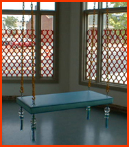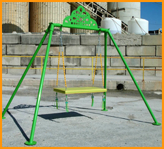 Vinyl Upholstered Bench big enough for two at 22"x42". Choose from several bright colors. The Safety Plastisol dipped playground chain comes in lengths up to 85". All other hardware is stainless steel. And, the tassels, each set of four unique to your swing, are made of acrylic spheres and plastic twine.
